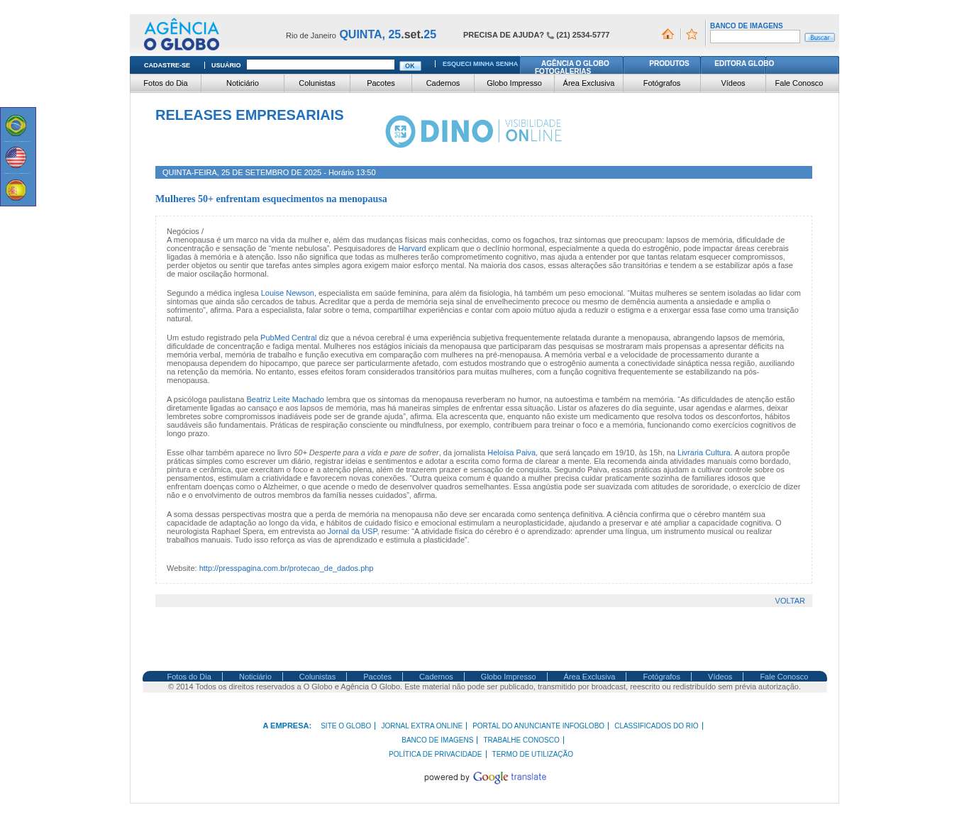 AGÊNCIA O GLOBO - Mulheres 50+ enfrentam esquecimentos na menopausa