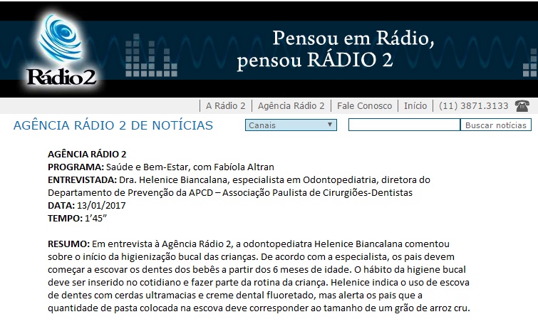 AGÊNCIA RÁDIO 2 - Entrevista com Dra. Helenice Biancalana