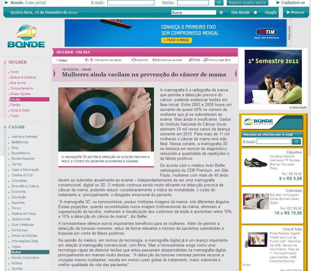 PORTAL BONDE - Mulheres ainda vacilam na prevenção do câncer de mama