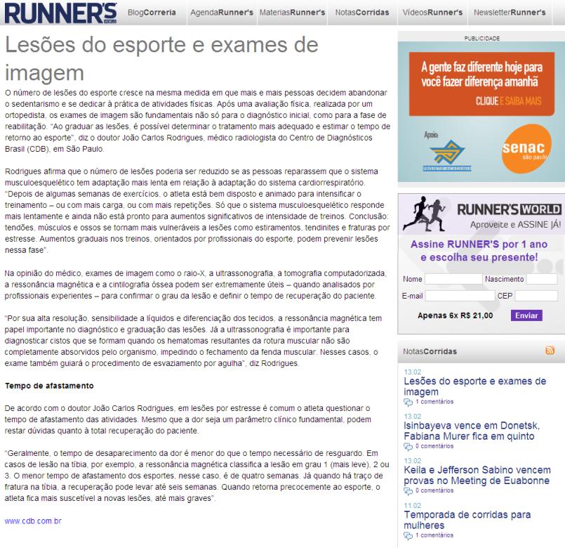 RUNNER´S WORLD (NEWS) - Lesões do esporte e exames de imagem
