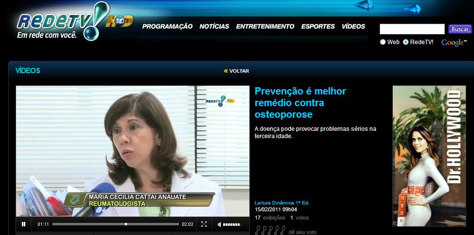 Clipping PROGRAMA LEITURA DINÂMICA (REDE TV) - Prevenção é melhor remédio contra osteoporose 15/02/2011
