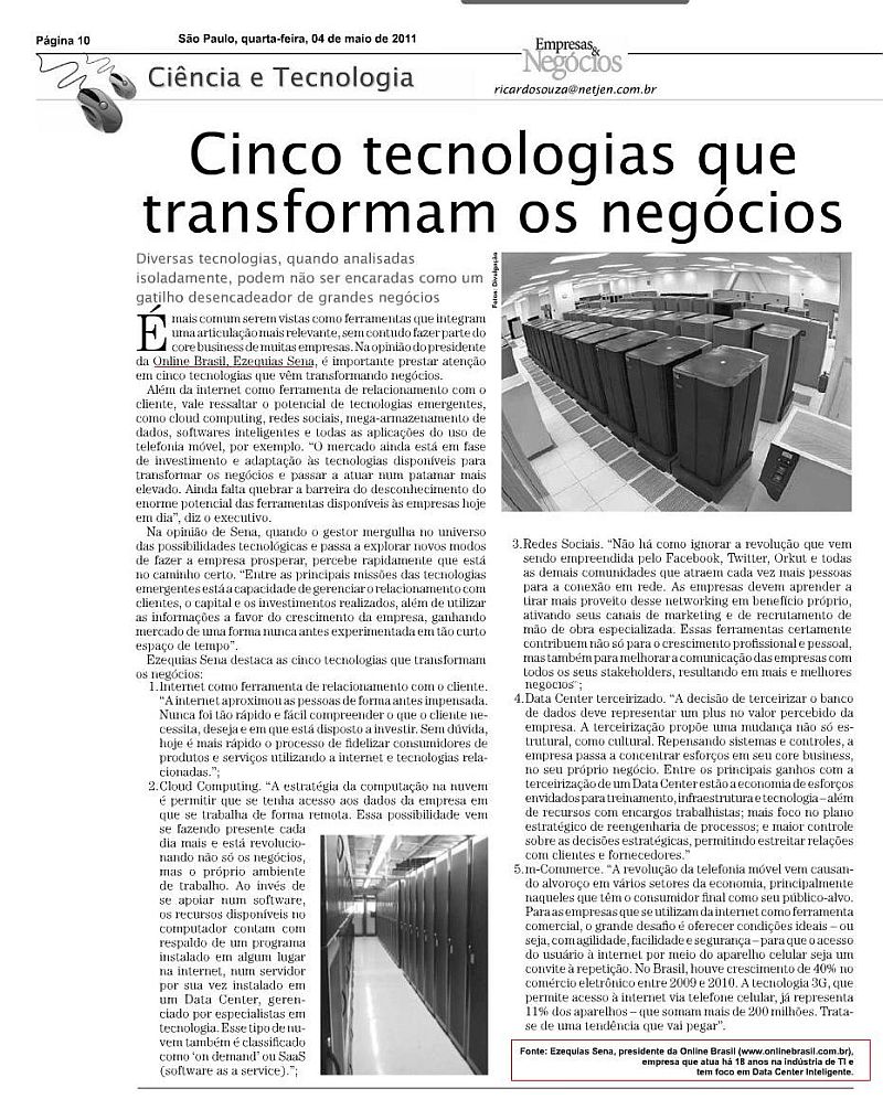 JORNAL EMPRESAS & NEGÓCIOS - Cinco tecnologias que transformam os negócios