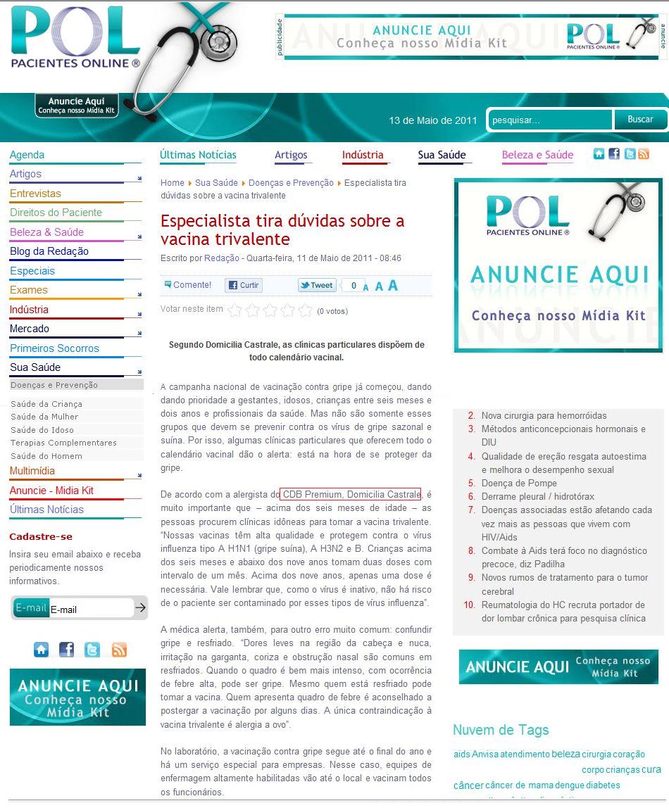 PACIENTES ONLINE - Especialista tira dúvidas sobre vacina trivalente