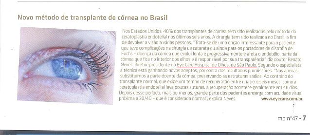 REVISTA MUNDO DA ÓPTICA - Novo transplante de córnea no Brasil