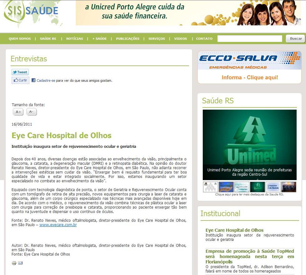 SIS SAÚDE - Eye Care inaugura setor de rejuvenescimento ocular