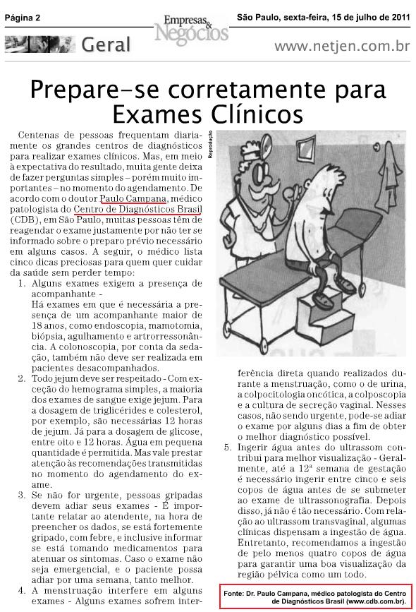 JORNAL EMPRESAS & NEGÓCIOS - Prepare-se corretamente para os exames clínicos