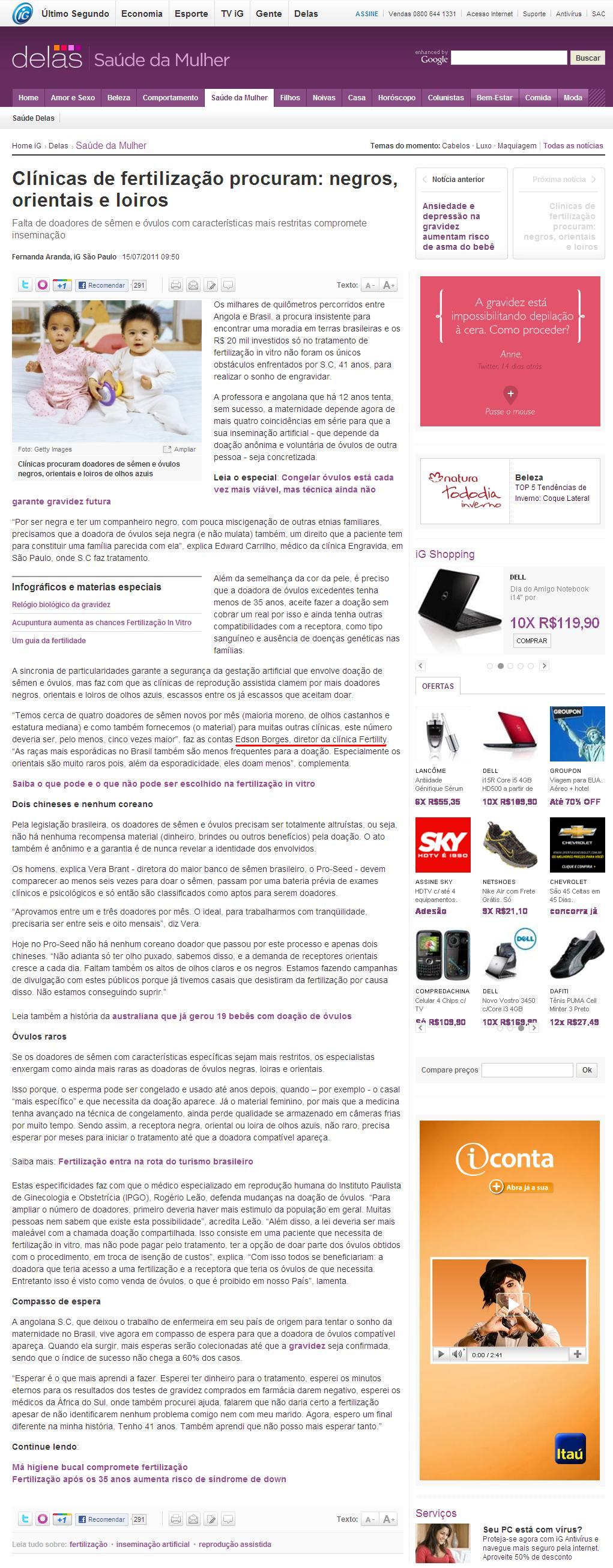 Clipping PORTAL IG (DELAS) - Clínicas de fertilização procuram: negros, orientais e loiros 16/07/2011