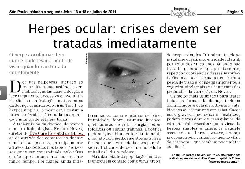 JORNAL EMRESAS & NEGÓCIOS - Herpes ocular não tem cura