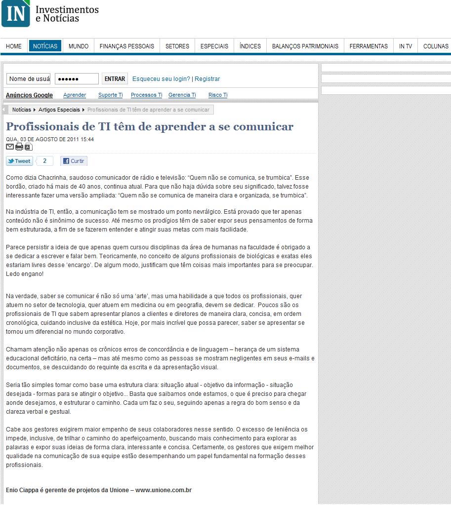 INVESTIMENTOS E NOTÍCIAS - Profissionais de TI têm de aprender a se comunicar