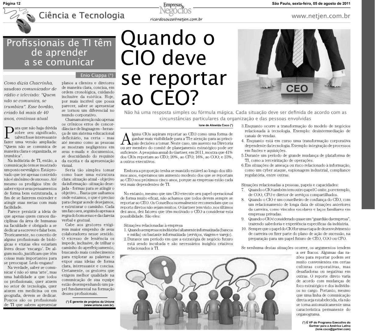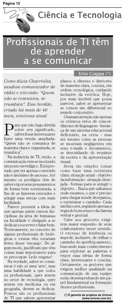 JORNAL EMPRESAS & NEGÓCIOS - Profissionais de TI têm de aprender a se comunicar