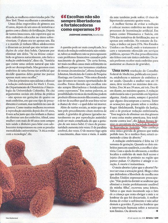 Clipping REVISTA ÉPOCA - Estudo revela técnica de fertilização assistida que resulta em mais bebês do sexo feminino 30/08/2011