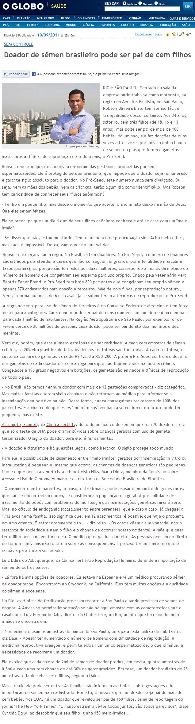 O GLOBO - Doador de sêmen pode ser pai de cem filhos