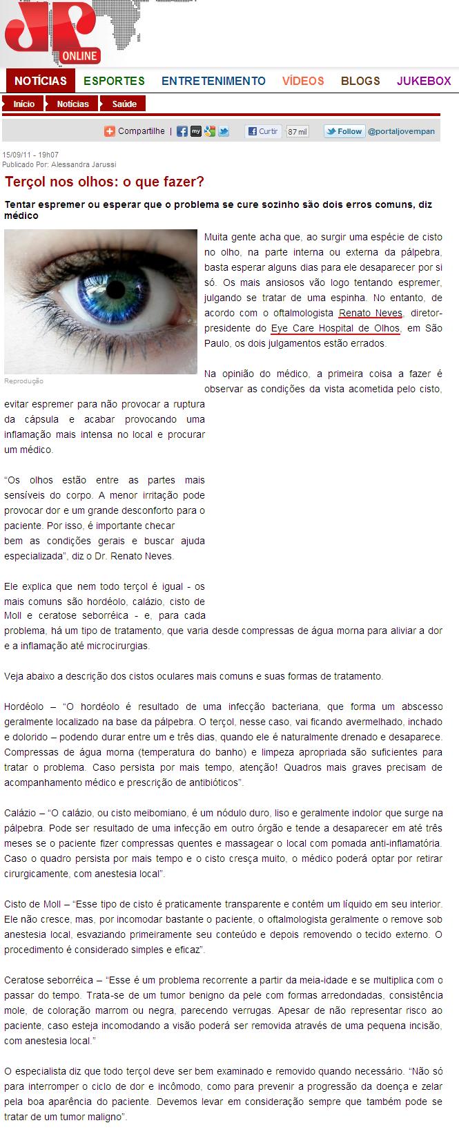 PORTAL JOVEM PAN - Terçol nos olhos: o que fazer?