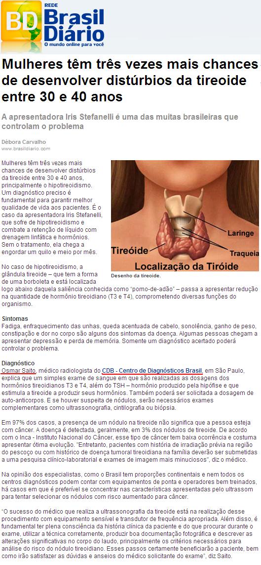 Clipping REDE BRASIL DIÁRIO - Hipotireoidismo: diagnóstico preciso proporciona melhor qualidade de vida aos pacientes 20/09/2011