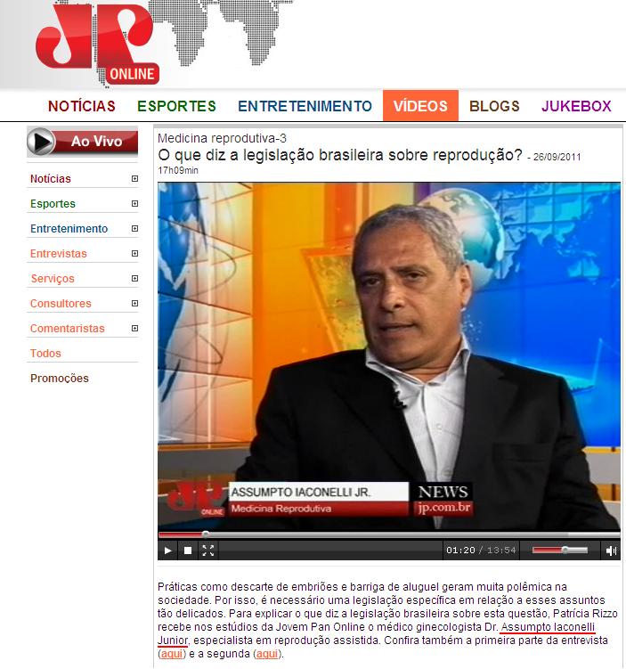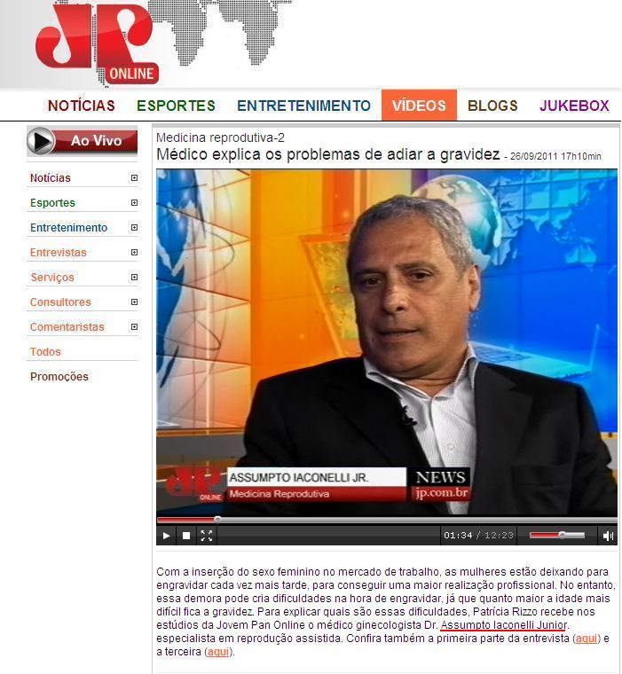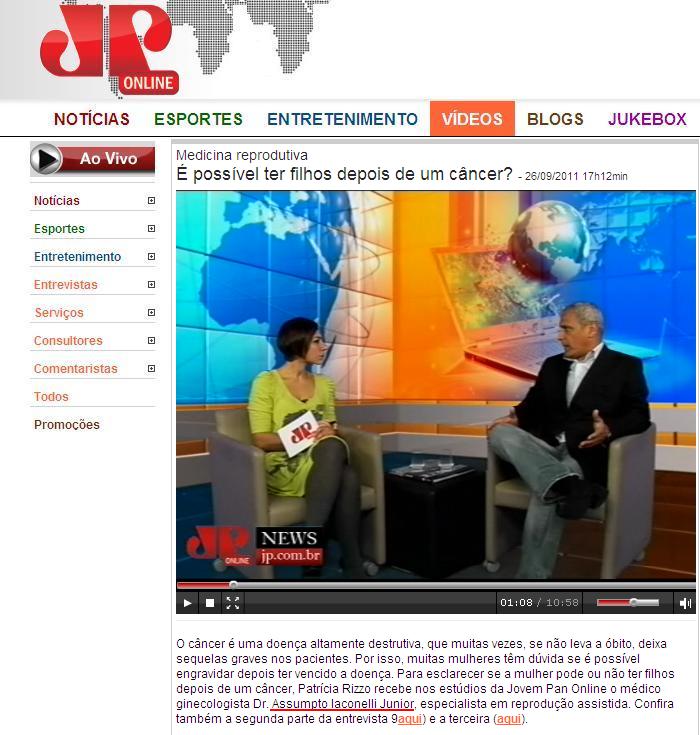 Clipping JOVEM PAN ONLINE (WEB TV) - É possível ter filhos depois de um câncer? Tempo Total: 38' 27/09/2011