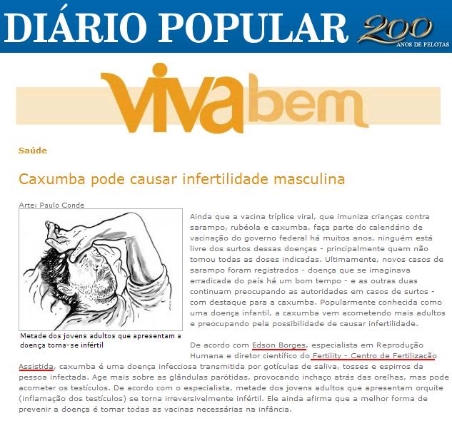 DIÁRIO POPULAR (CADERNO VIVA BEM) - Caxumba causa infertilidade masculina?