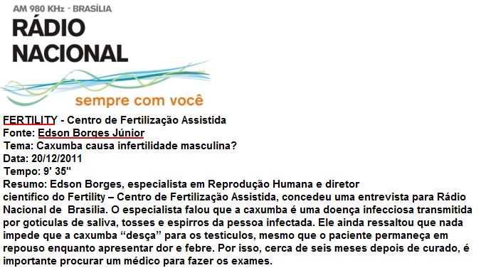 RÁDIO NACIONAL DE BRASÍLIA AM - Caxumba causa infertilidade masculina?