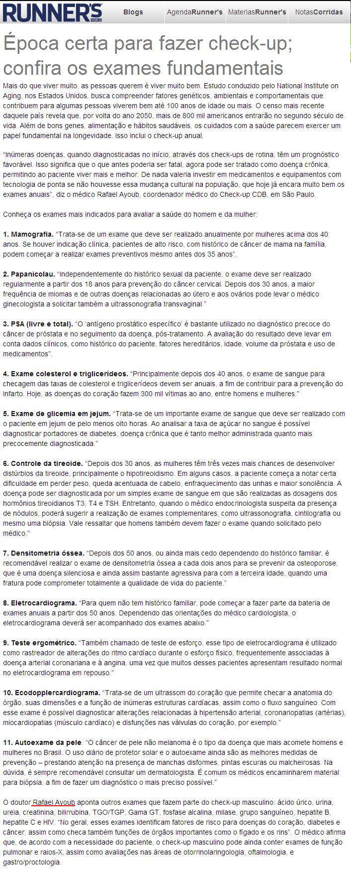 Clipping PORTAL REVISTA RUNNERS WORLD - Melhor época para fazer check-up e colocar a saúde em dia 03/01/2012