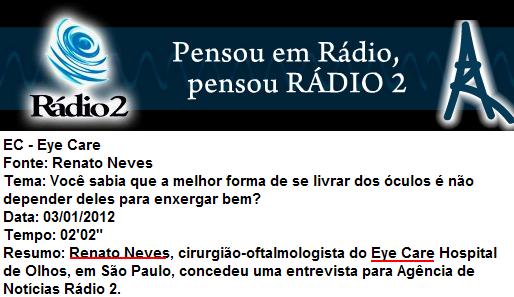 Clipping RÁDIO 2 - Você sabia que a melhor forma de se livrar dos óculos é não depender deles para enxergar bem? 03/01/2012