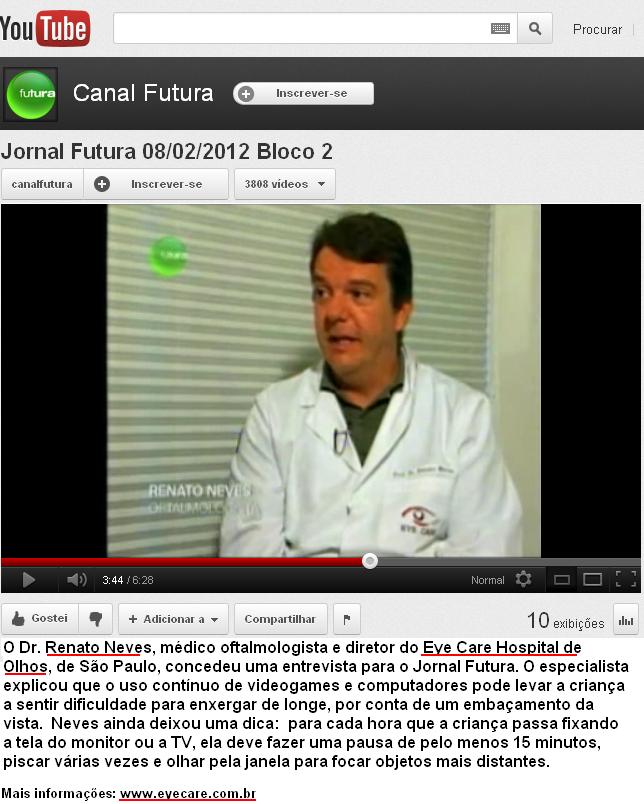 Clipping JORNAL FUTURA (TV) - Mais tempo ao ar livre pode reduzir incidência de miopia em crianças e adolescentes 09/02/2012