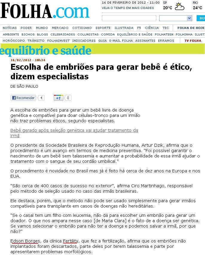 FOLHA.COM - Escolha de embriões para gerar bebê é ético, dizem especialistas