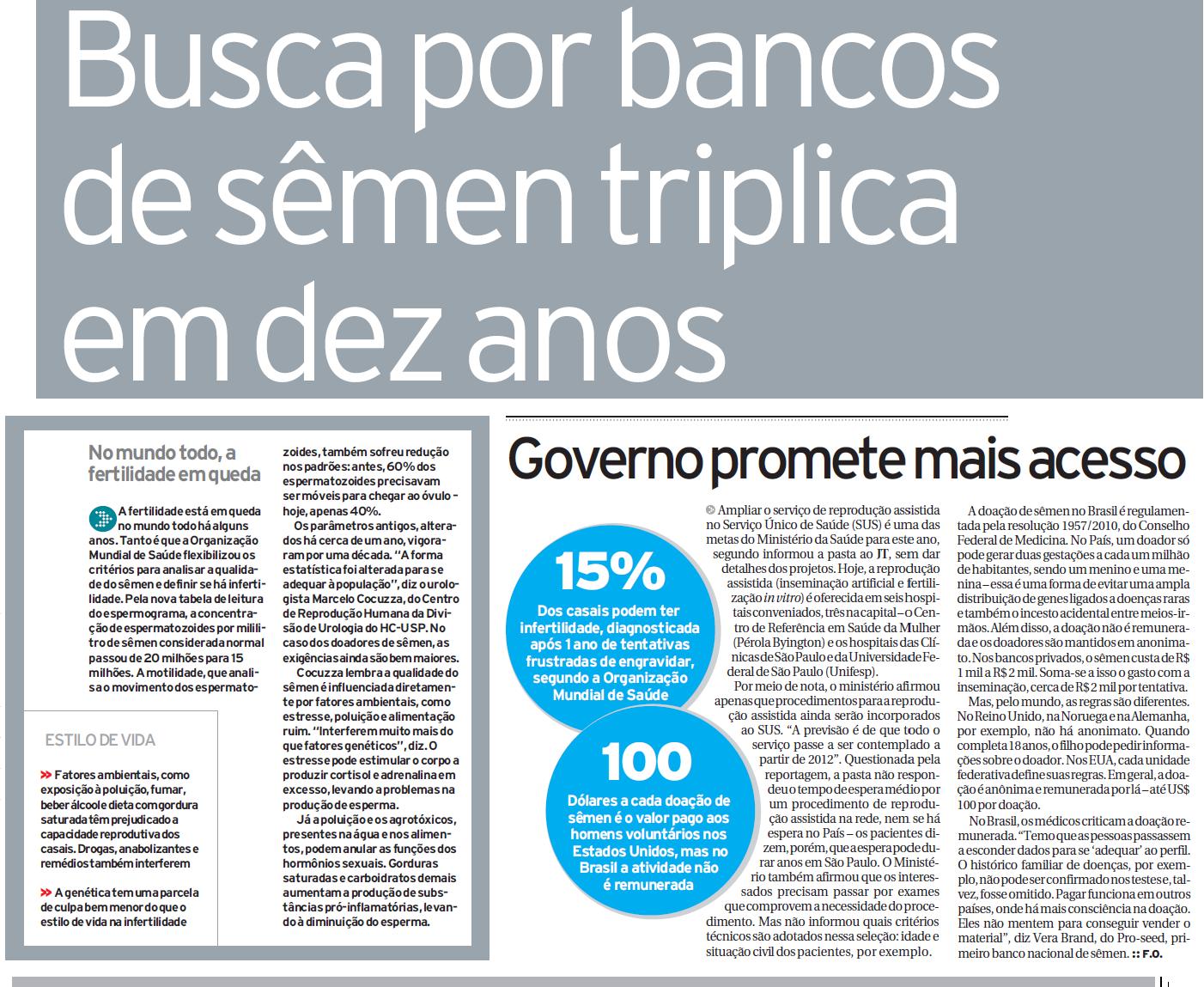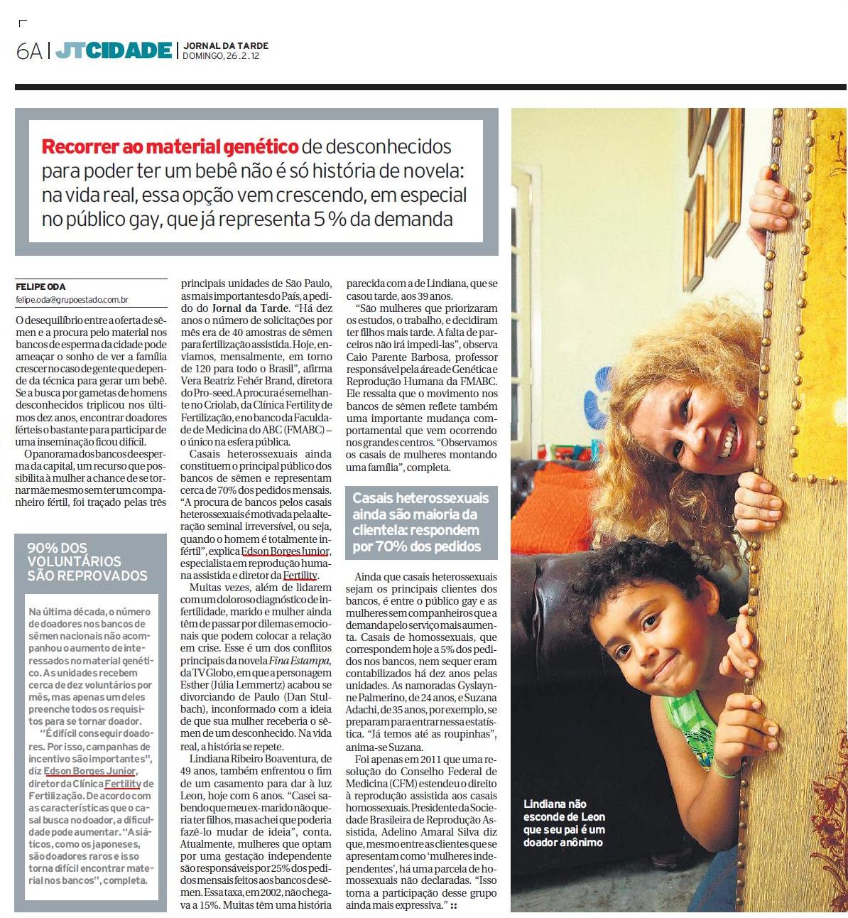 JORNAL DA TARDE - Busca por bancos de sêmen triplica em dez anos