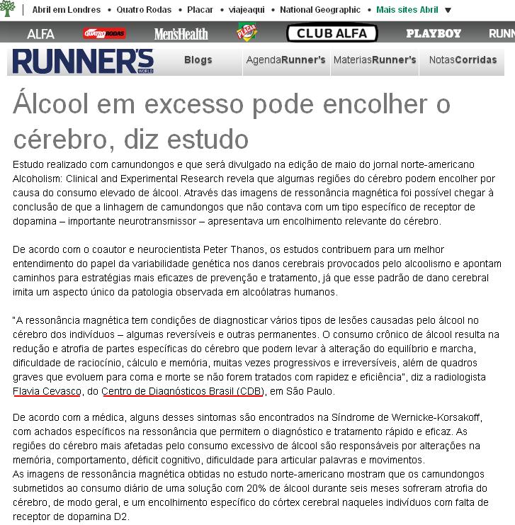 Clipping PORTAL REVISTA RUNNER'S (ABRIL) - Álcool em excesso pode encolher o cérebro, diz estudo 28/02/2012