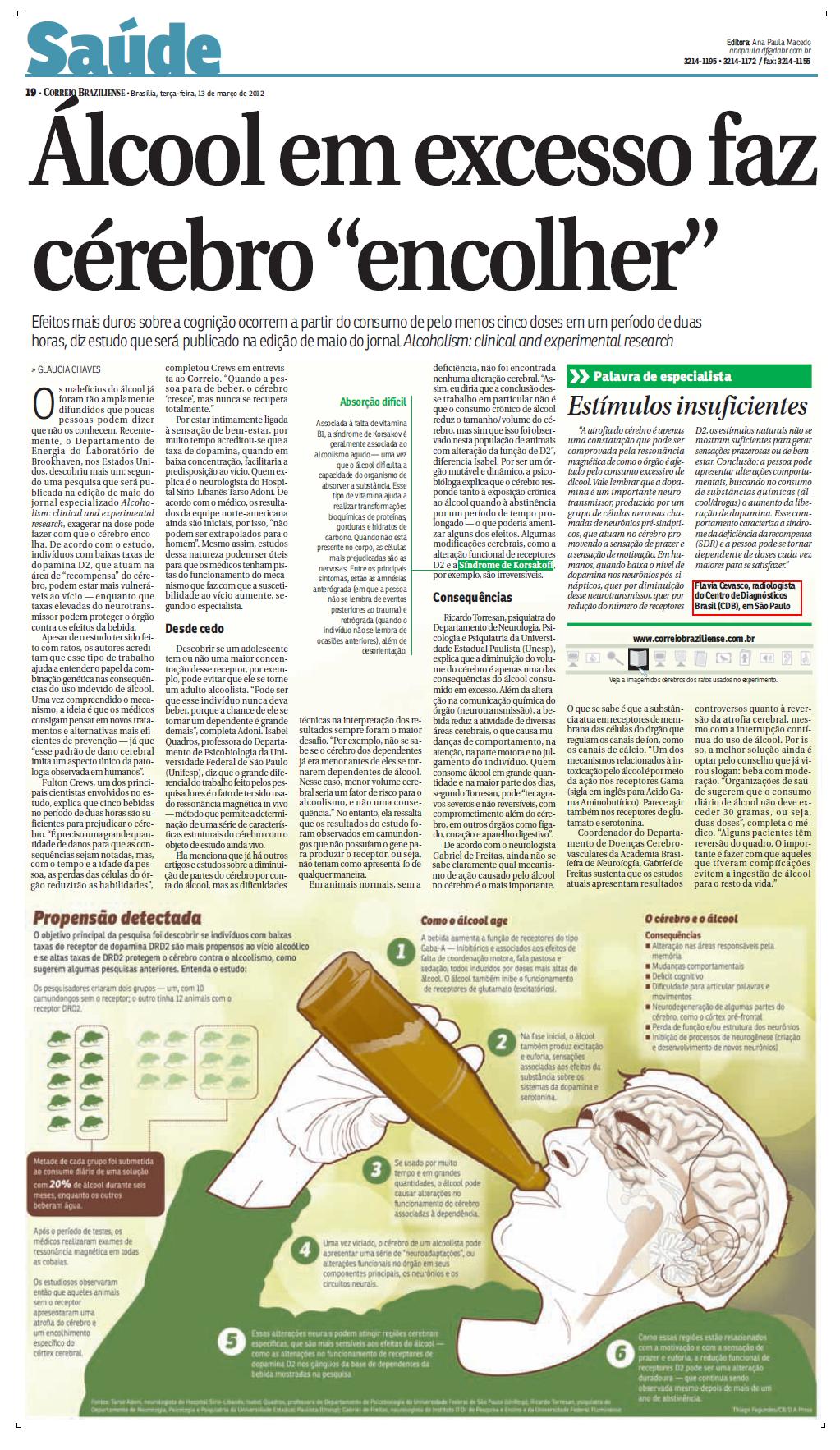 Clipping JORNAL CORREIO BRAZILIENSE - Álcool em excesso pode encolher o cérebro, diz estudo 14/03/2012