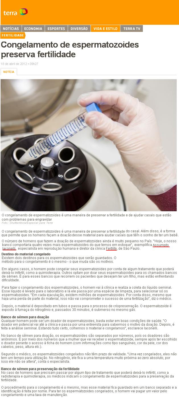 PORTAL TERRA - Congelamento de espermatozóides preserva fertilidade