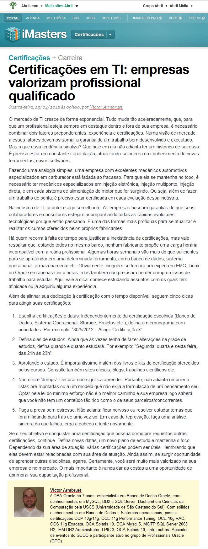 Clipping I MASTERS (ABRIL) Certificações em TI: empresas valorizam profissional qualificado 25/04/2012
