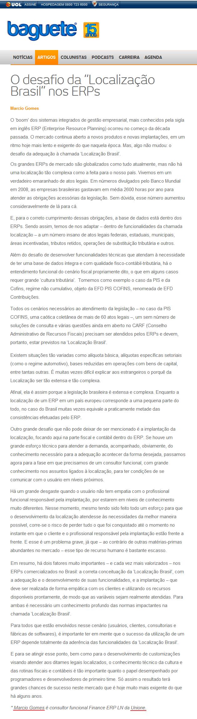 BAGUETE (UOL) - O desafio da “Localização Brasil” nos ERPs