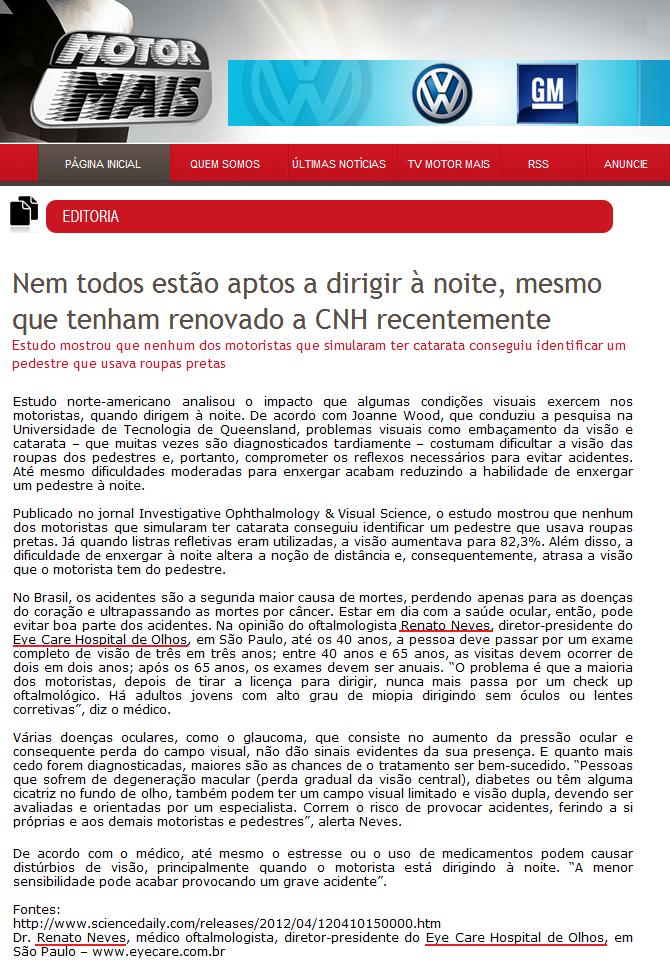 Clipping MOTOR MAIS - Nem todos estão aptos a dirigir à noite, mesmo que tenham renovado a CNH recentemente 04/05/2012