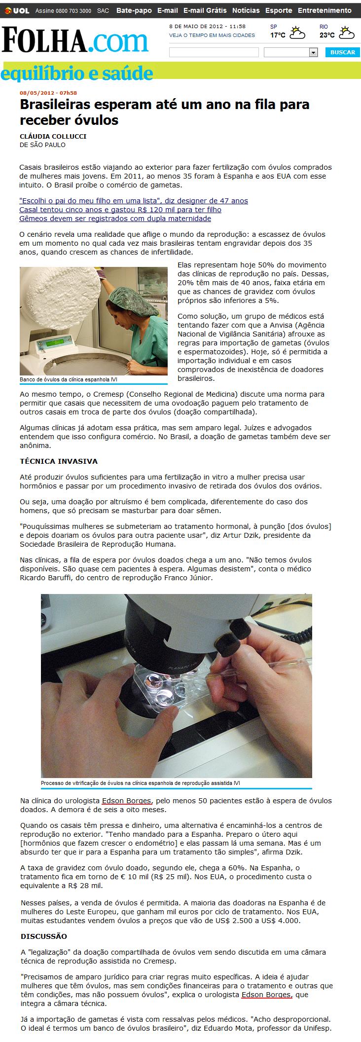 FOLHA.COM - Brasileiras esperam até um ano na fila para receber óvulos