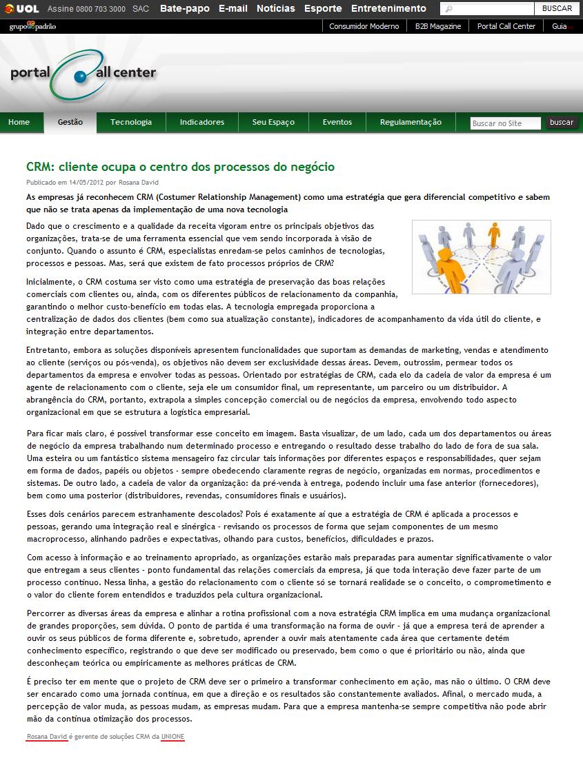 PORTAL CALL CENTER - CRM: cliente ocupa o centro dos processos do negócio