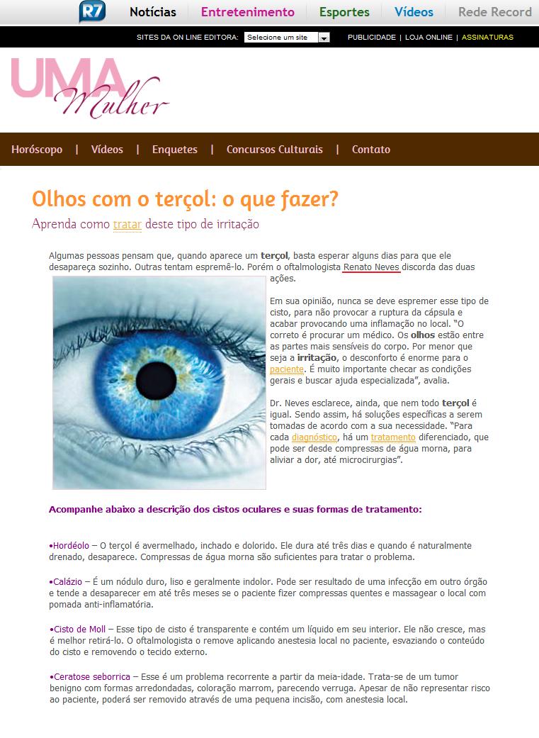 PORTAL REVISTA UMA (R7) - Olhos com terçol: o que fazer?