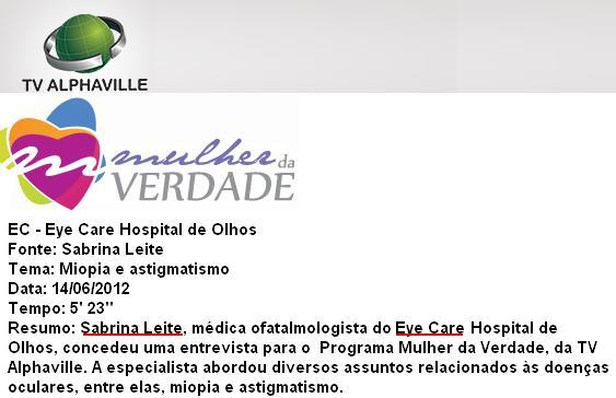 PROGRAMA MULHER DE VERDADE (TV ALPHAVILLE) - Miopia e astigmatismo