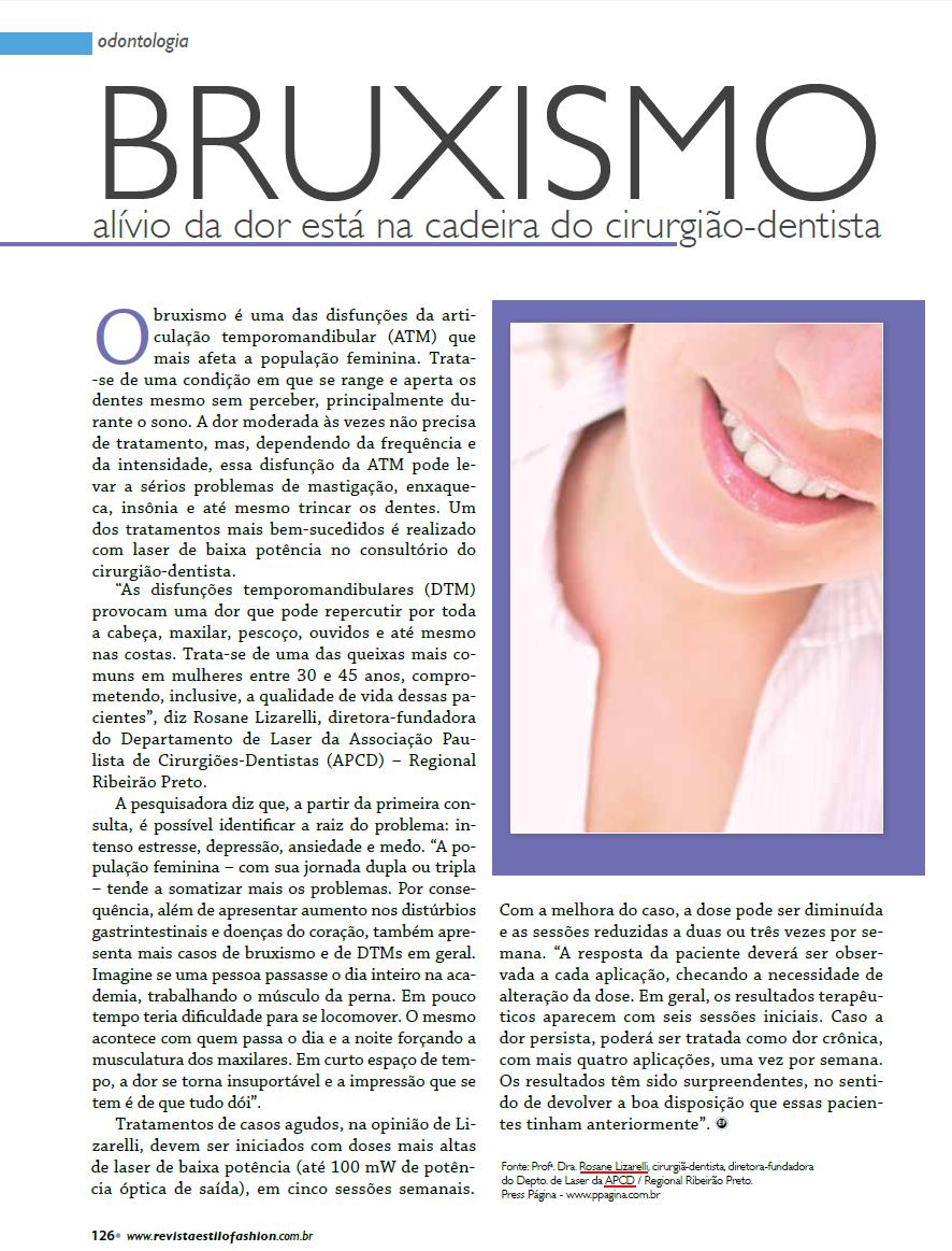 Clipping REVISTA ESTILO FASHION - Bruxismo, alívio da dor está na cadeira do cirurgião-dentista 20/07/2012