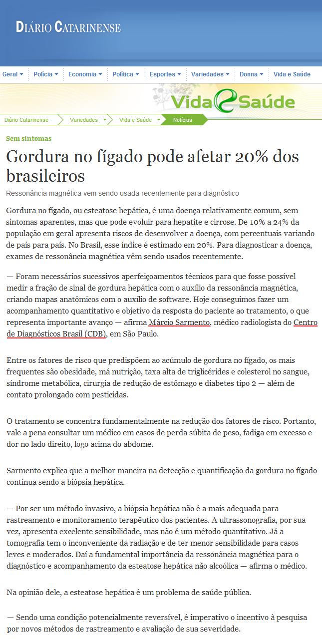 DIÁRIO CATARINENSE (ONLINE) - Gordura no fígado pode afetar 20% dos brasileiros