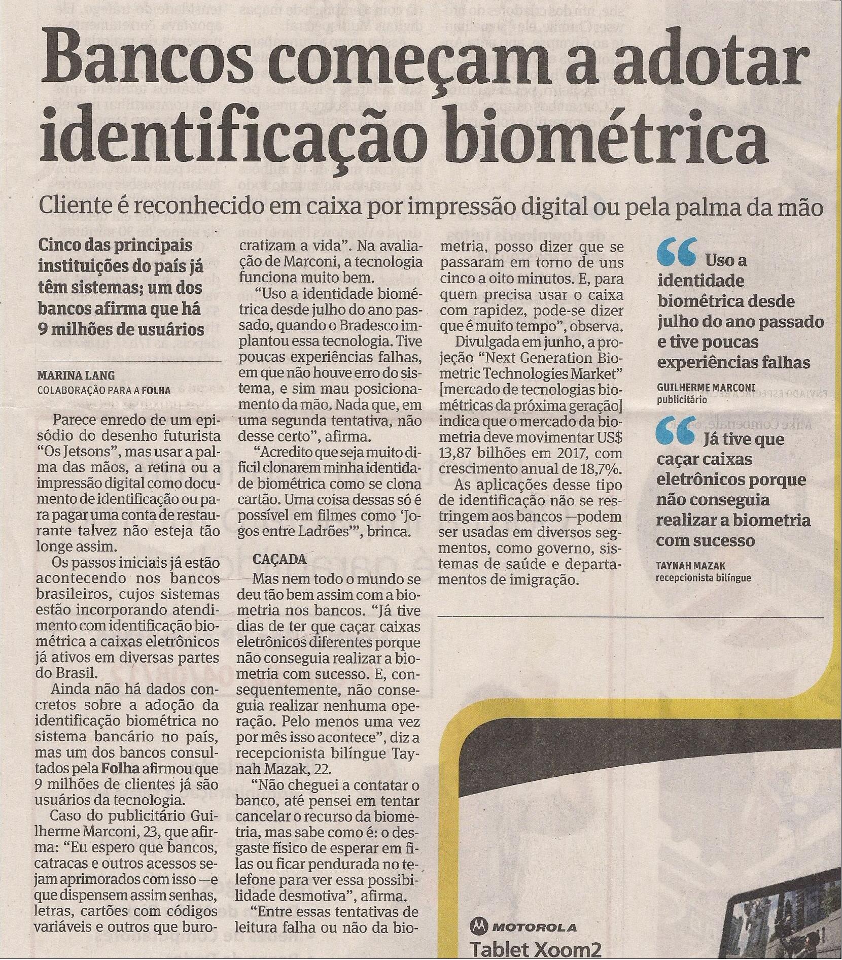 FOLHA DE S.PAULO (IMPRESSO) - Bancos começam a adotar identificação biométrica