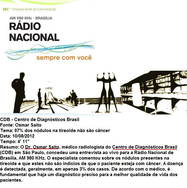 RÁDIO NACIONAL DE BRASÍLIA - 97% dos nódulos na tireoide não são câncer