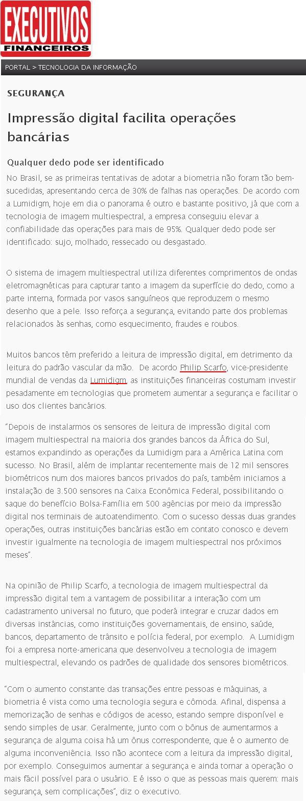 EXECUTIVOS FINANCEIROS - Impressão digital facilita operações bancárias