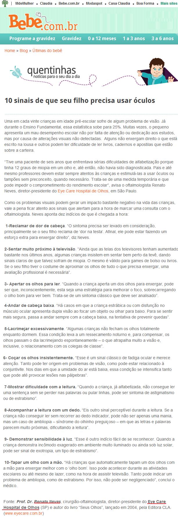 BEBÊ.COM.BR (ABRIL) - 10 sinais de que seu filho precisa usar óculos