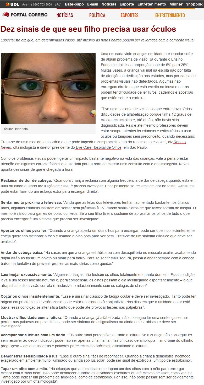 PORTAL CORREIO (UOL) - Dez sinais de que seu filho precisa usar óculos