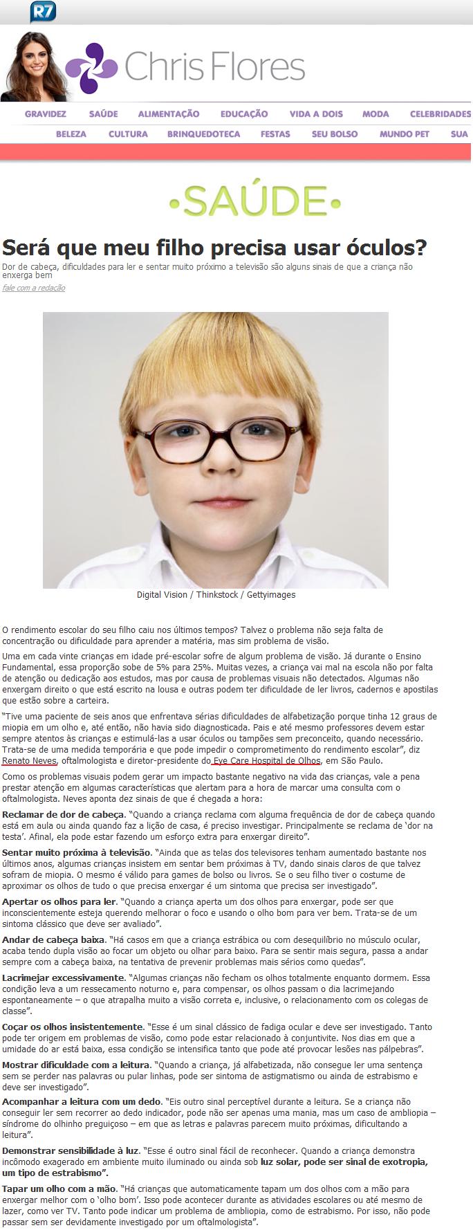 CHRIS FLORES (PORTAL R7) - Dez sinais de que seu filho precisa usar óculos