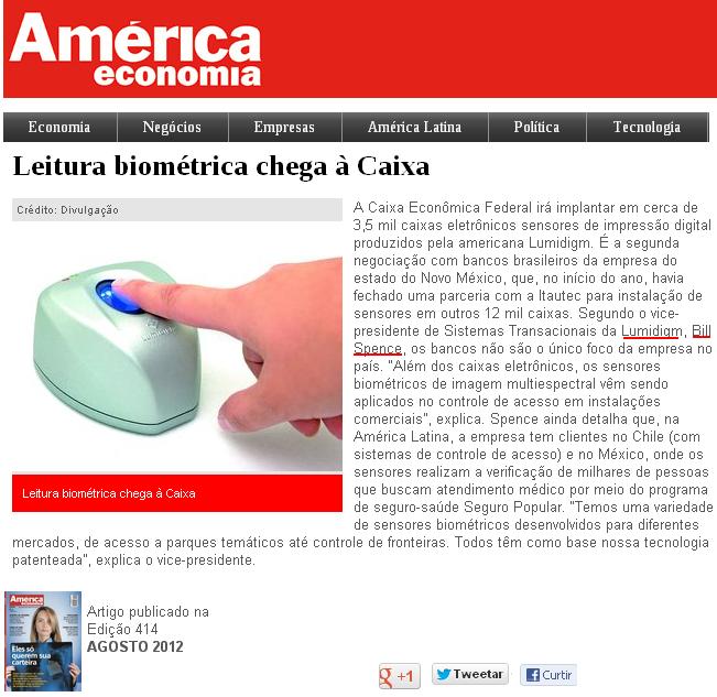 REVISTA AMÉRICA ECONOMIA (ONLINE) - Leitura biométrica chega à Caixa