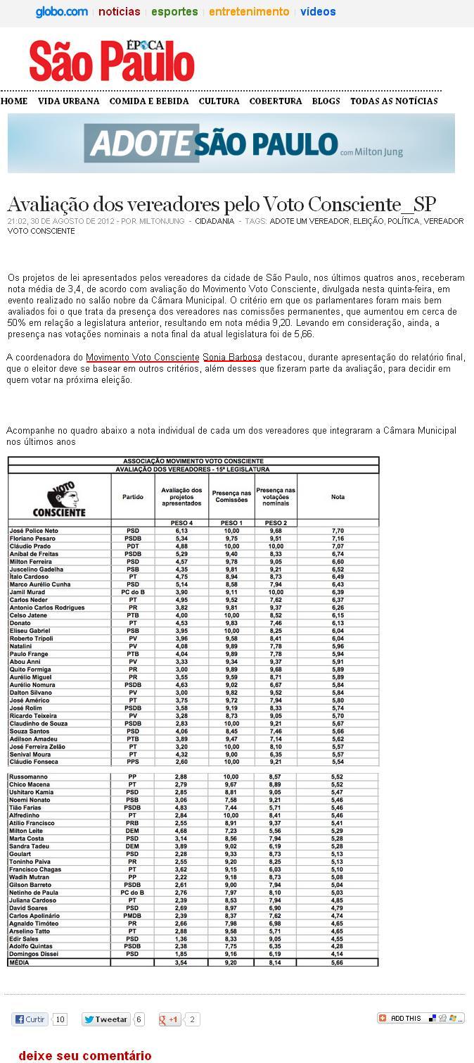 COLUNA ADOTE SÃO PAULO (ÉPOCA SÃO PAULO) - Voto 2012