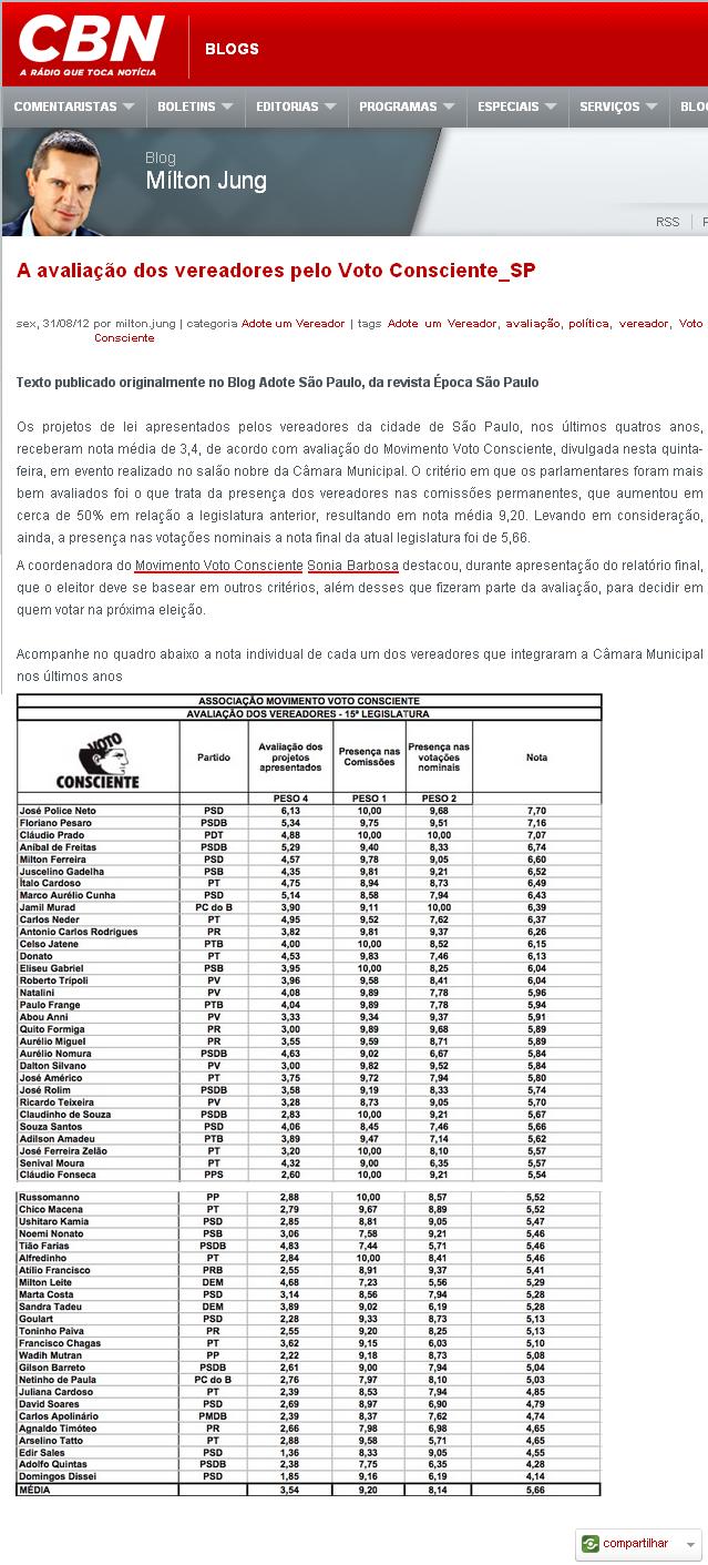 PORTAL RÁDIO CBN (BLOG MILTON JUNG) - Voto 2012