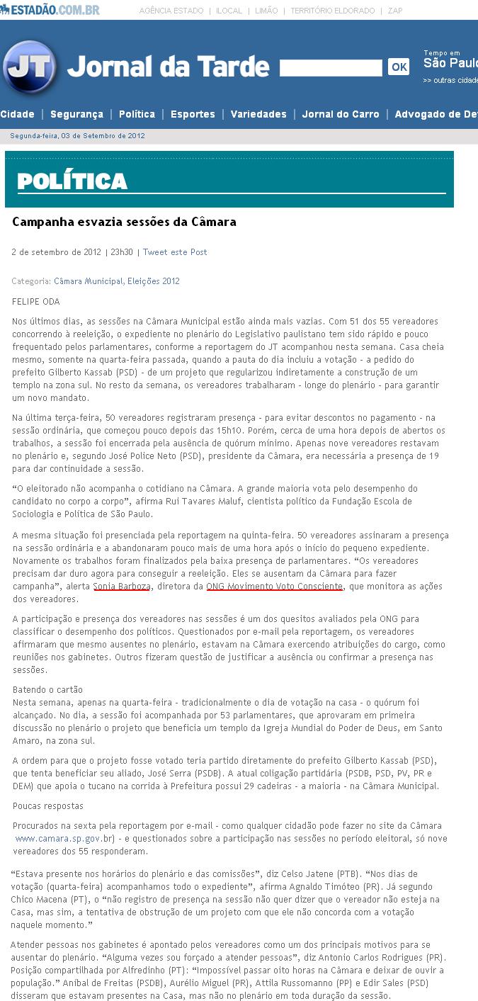 JORNAL DA TARDE (ONLINE) - Voto 2012