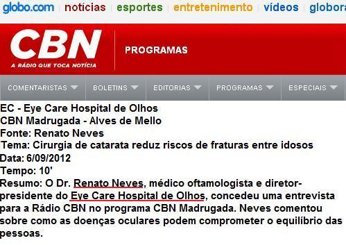 RÁDIO CBN - Cirurgia de catarata reduz riscos de fraturas entre idosos