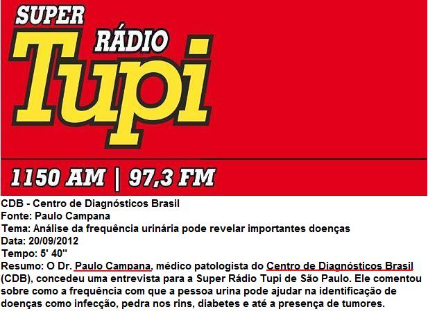 Clipping SUPER RÁDIO TUPI - Análise da frequência urinária pode revelar importantes doenças 20/09/2012